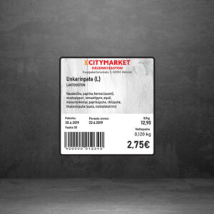 Tuotenumero: KCM-6090K-Citymarket esipainettu etiketti pakkauskoneeseen 75x90mm