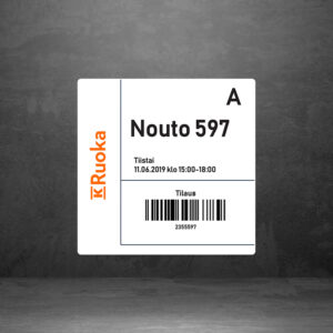 K-Market esipainettu vaakaetiketti, musta liukuvärjäys 57x43mm
