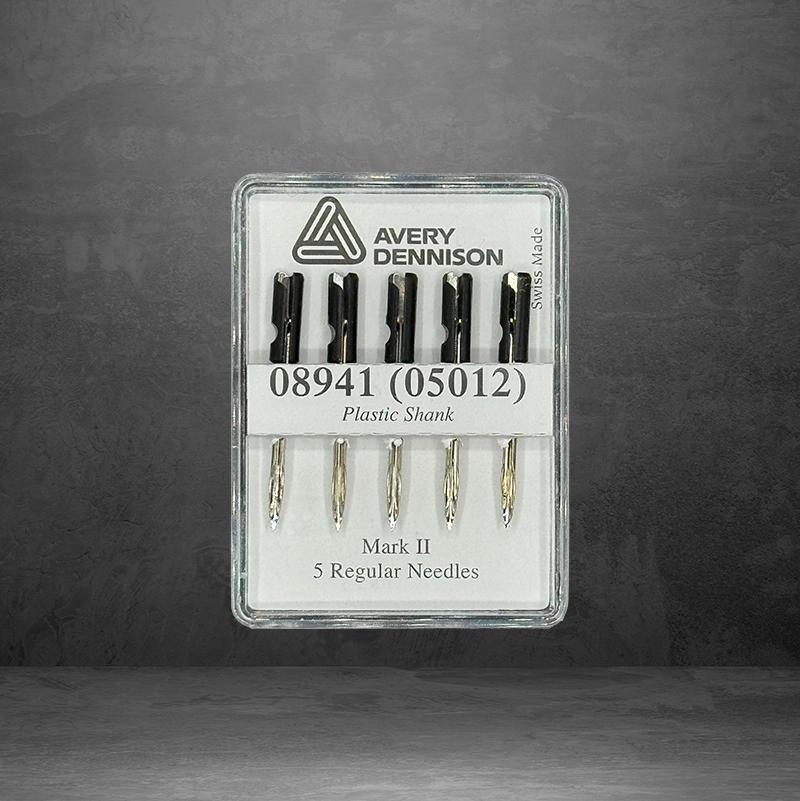 Normaalipaksuinen neula Dennison Mark II ja III tekstiilipistooleihin. Tätä neulaa käytetään hintalappujen kiinnittämiseen useimpien ja tavallisten materiaalien kanssa (esim. vaatteet ja kengät). Pakkauksessa on viisi neulaa.