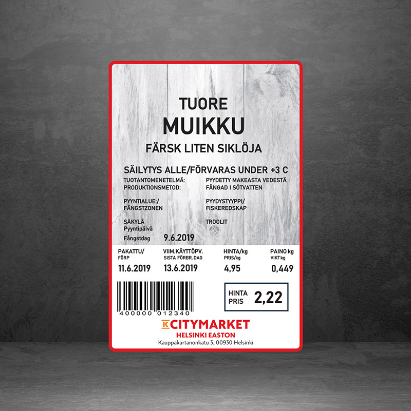 K-Citymarket esipainettu etiketti pakkauskoneeseen 60x90mm