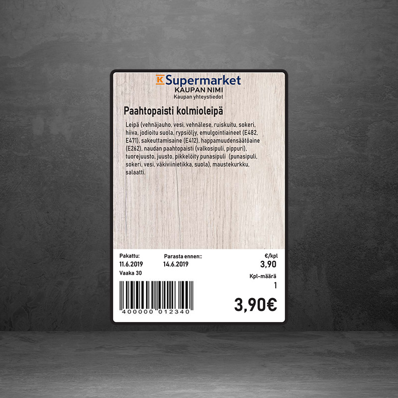K-Supermarket esipainettu vaakaetiketti 57x82mm